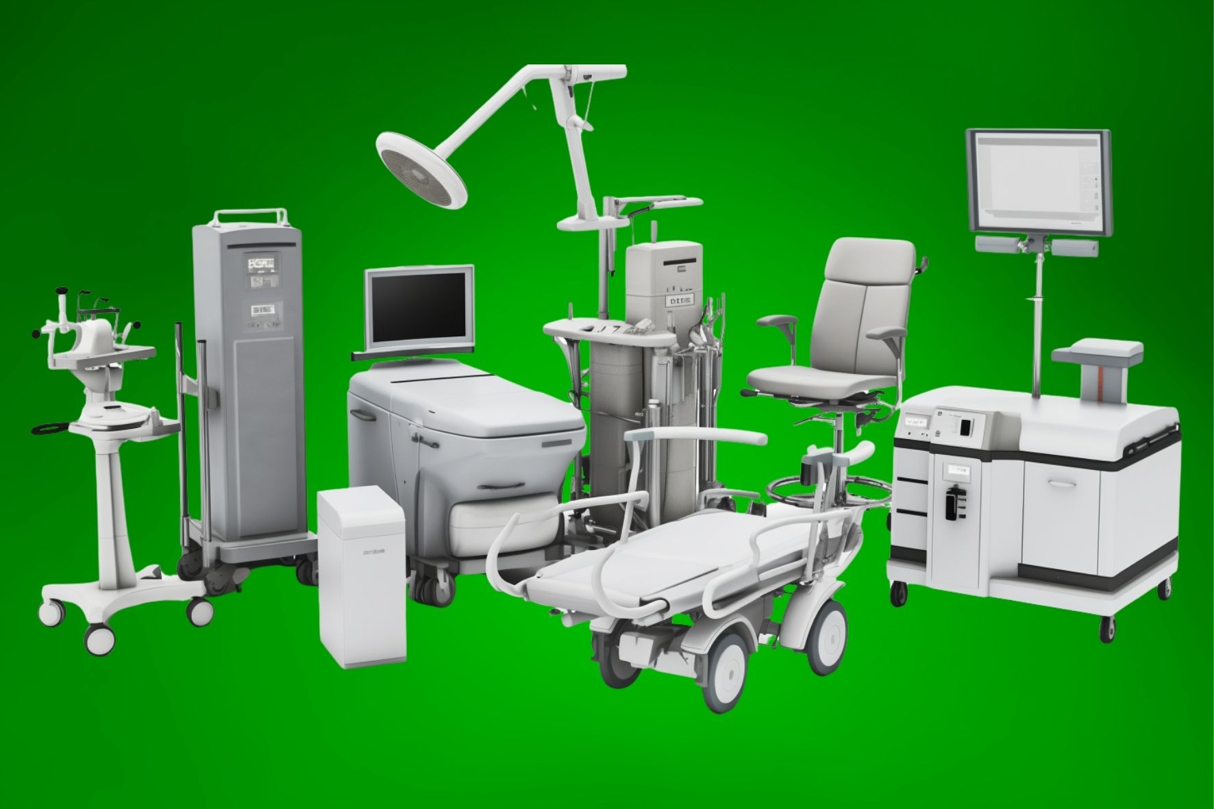 Hospital Furniture & Fixtures: Including drip stands, medical examination halogen lamps, and essential hospital furniture.
